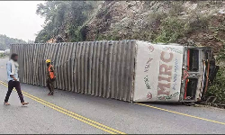 தர்மபுரி அருகே கன்டெய்னர் லாரி கவிழ்ந்து விபத்து