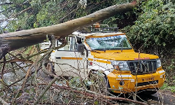 குன்னூர் சுற்று வட்டாரப் பகுதிகளில் பெய்துவரும் காற்றுடன் கூடிய கனமழையால் மஞ்சூர் சாலையில், ராட்சத மரம் ஒன்று பிக்கப் வாகனத்தின் மீது விழுந்து விபத்துக்குள்ளானது. இதில் ஓட்டுநர் நல்வாய்ப்பாக உயிர் தப்பியுள்ளார். மரத்தை அகற்றும் பணியில் தீயணைப்புத் துறையினர் ஈடுபட்டு வருகின்றனர்.