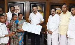2 தி.மு.க. உறுப்பினர்களின் குடும்பத்தினருக்கு முதல்-அமைச்சர் மு.க.ஸ்டாலின் நிதியுதவி வழங்கினார்.