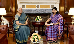 மத்திய நிதி மந்திரி நிர்மலா சீதாராமன் - திமுக நாடாளுமன்ற குழுத் தலைவர் கனிமொழி சந்திப்பு