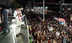 இடஒதுக்கீடு உரிமையை வழங்கியதில் மிகப்பெரிய பங்குடைய, சென்னை மாகாண முதல்வராக பதவியேற்ற முதல் தமிழர் சுப்புராயன் அவர்களுக்கு மணிமண்டபம் கட்டிக்கொடுப்பதாக வாக்குறுதி எண் 456-ல் கொடுத்தது யாரு? சொன்னாங்களே... செஞ்சாங்களா?" நாமக்கல்லில் முட்டை சேமிப்புக்கிடங்கு, ஆராய்ச்சி மையம் அமைக்க வேண்டுமென்ற கோரிக்கை பலஆண்டுகளாக கிடப்பில் போடப்பட்டுள்ளன. திமுகவுக்கு போடும் ஓட்டு பாஜகவுக்கு போடும் ஓட்டு. திமுக - பாஜக மறைமுக உறவு. 2026-ல் தவெக - திமுக இடையேதான் போட்டி. நம்பிக்கையோடு இருங்கள்...சத்தியமாக பார்த்திடலாம்..இரண்டில் ஒரு கை பார்ப்போம் என்றார்.
