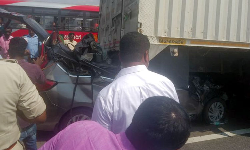 கண்டெய்னர் லாரி மீது கார் மோதி விபத்து: 5 பேர் பலி