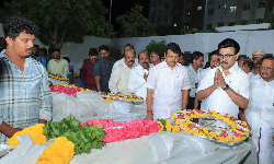 கரூர் அரசு மருத்துவமனைக்கு வருகை தந்த முதல்-அமைச்சர் மு.க.ஸ்டாலின் உயிரிழந்தவர்களின் உடல்களுக்கு மலர் வளையம் வைத்து அஞ்சலி செலுத்தினார்.