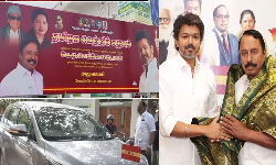 எம்.ஜி.ஆர்., ஜெயலலிதா, விஜய் படங்களுடன் தனது அலுவலகத்தில் செங்கோட்டையன் பேனர் வைத்த்துள்ளார்.