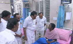 கரூர் விஜய் பரப்புரையில் ஏற்பட்ட நெரிசலில் சிக்கி அரசு மருத்துவக் கல்லூரி மருத்துவமனையில் சிகிச்சை பெற்று வருபவர்களிடம் நலம் விசாரித்தார் அதிமுக முன்னாள் அமைச்சர் எம்.ஆர்.விஜயபாஸ்கர்.