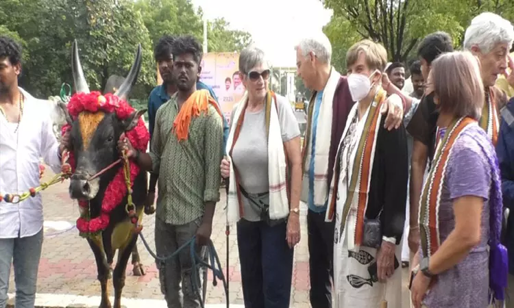 திருச்சி: கலெக்டர் அலுவலகத்தில் பொங்கல் வைத்து கொண்டாட்டம்; 25 வெளிநாட்டு சுற்றுலாவாசிகள் பங்கேற்பு