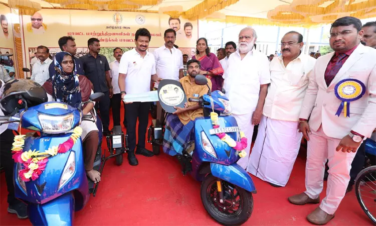 தொடர்ந்து மாற்றுத்திறனாளிகள் நலத்துறையின் சார்பில் 50 மாற்றுத்திறனாளிகளுக்கு தலா 1,01,800 வீதம் மொத்தம் ரூ. 50.90 லட்சம் மதிப்பீட்டிலான மோட்டார் பொருத்திய நான்கு சக்கர வாகனங்களையும், வேளாண்மைத்துறையின் சார்பில் 20 பயனாளிகளுக்கு ரூ. 1.94 லட்சம் மதிப்பீட்டிலான விதைத் தொகுப்புகள் உள்ளிட்ட நலத்திட்ட உதவிகளையும், வேளாண்மைப் பொறியியல் துறையின் சார்பில் 10 பயனாளிகளுக்கு ரூ. 13.04 லட்சம் மதிப்பீட்டில் மின் மோட்டார் பம்பு செட், சோலார் பம்பு செட் உள்ளிட்ட நலத்திட்டங்களையும், முதல்-அமைச்சரின் விரிவான மருத்துவக் காப்பீட்டுத்திட்டத்தின் கீழ் 500 பயனாளிகளுக்கு ரூ. 5 லட்சம் வரை சிகிச்சை பெறுவதற்கான மருத்துவ காப்பீட்டு திட்ட அட்டைகளையும் என மொத்தம் 5,478 பயனாளிகளுக்கு ரூ. 61.45 கோடி மதிப்பீட்டிலான அரசு நலத்திட்ட உதவிகளை தமிழ்நாடு துணை முதல்-அமைச்சர் உதயநிதி ஸ்டாலின் வழங்கினார்.