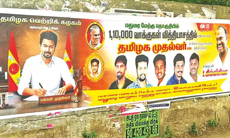 மேலும் அதில், "மதுரை மேற்கு தொகுதியில் நடிகர் விஜய்யை வெற்றி பெற செய்து முதல்- அமைச்சராக்கிய மக்களுக்கு நன்றி நன்றி..." எனவும் எழுதப்பட்டுள்ளது. தற்போது மதுரை மேற்கு தொகுதி எம்.எல்.ஏ.வாக முன்னாள் அமைச்சர் செல்லூர் ராஜூ உள்ளார். இவர் இந்த தொகுதியில் அடுத்தடுத்து 3 முறை வெற்றி பெற்றவர் ஆவார். 2026-ல் மீண்டும் அவர் அ.தி.மு.க. சார்பில் போட்டியிடுவார் என எதிர்பார்க்கப்படுகிறது.