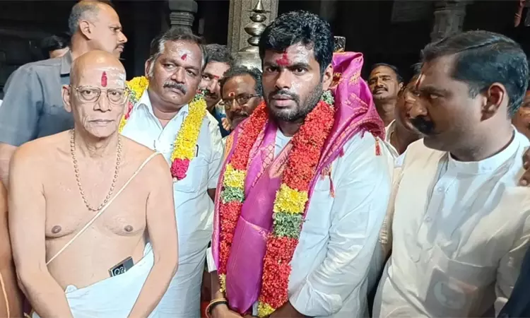 அவருக்கு திருக்கோவில் சார்பாக காஞ்சி காமாட்சி அம்மன் புகைப்படமும் சிறப்பு பிரசாதங்களும் வழங்கப்பட்டது. மேலும் ஆடி மாதம் என்பதால் அதிகளவில் பக்தர்கள் கூடியிருந்த நிலையில் அனைவரிடம் செல்பி எடுத்தும் போட்டோ எடுத்தும் மகிழ்ந்தார். அதனை தொடர்ந்து தமிழக பாஜக முன்னாள் தலைவர் அண்ணாமலை காஞ்சிபுரத்தில் செய்தியாளர் சந்திப்பில் கூறியதாவது:-