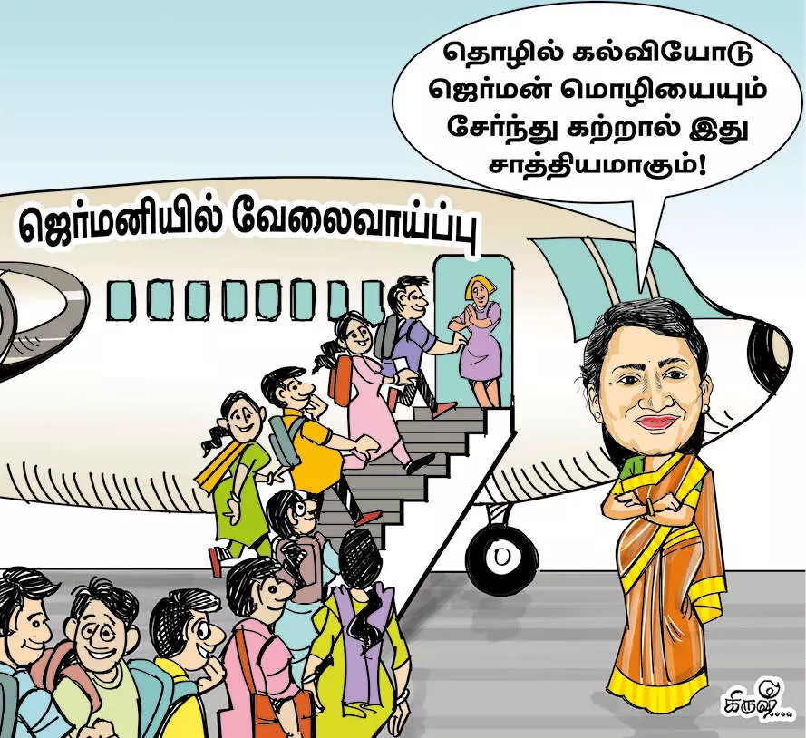 இதுமட்டுமல்லாமல் மேலும் 700 நர்சுகளை அனுப்புவதற்கான பணிகளும் மும்முரமாக நடந்துவருகிறது. தமிழகத்தில் பாலிடெக்னிக்குகளில் படிக்கும் மாணவர்களை உடனடி வேலைவாய்ப்புகளை பெற தகுதியானவர்களாக மாற்றும் வகையில் பல்வேறு ஆக்கப்பூர்வமான முன்னெடுப்புகளை தொழில்நுட்ப கல்வி கமிஷனர் இன்னசென்ட் திவ்யா செய்துவருகிறார். தமிழ்நாட்டில் 55 அரசு பாலிடெக்னிக்குகளும், 34 அரசு உதவி பெறும் பாலிடெக்னிக்குகளும், 320 தனியார் பாலிடெக்னிக்குகளும் இருக்கின்றன. இதில் முதல் கட்டமாக 55 அரசு பாலிடெக்னிக்குகளில் மாணவர்களுக்கு ஜனவரி மாதம் முதல் ஜெர்மன் மொழியை இலவசமாக கற்றுக்கொடுப்பதற்கான ஏற்பாடுகளை அவர் செய்துவருகிறார். இதற்கான வகுப்புகள் மாணவர்களுக்கு தினமும் மாலை 6.30 மணி முதல் இரவு 8.30 மணி வரை நடைபெற உள்ளது.