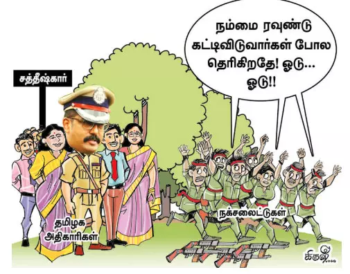 பஸ்தர் சரகத்தில் முன்பு பல ஆயிரக்கணக்கானோர் நக்சலைட்டுகள் இயக்கத்தில் இருந்தனர். இது 4 ஆயிரமாக குறைக்கப்பட்டு, இப்போது 1,200 பேர் மட்டுமே இருக்கிறார்கள். அவர்களிலும் 400 பேர் தான் ஆயுதம் ஏந்தும் நக்சலைட்டுகள். மீதம் உள்ளவர்கள் அவர்களுக்கு ஏவல் பணி செய்யும் உதவியாளர்கள்தான். சத்தீஷ்காரில் அன்பழகன், அலர்மேல்மங்கையுடன் கவர்னரின் செயலாளராக இருக்கும் சி.ஆர்.பிரசன்னா, பாரதிதாசன், பிரகாஷ், ஆர்.சங்கீதா, தேவசேனாபதி, ஆர்.பிரசன்னா உள்பட 12 ஐ.ஏ.எஸ். அதிகாரிகளும், வனத்துறையில் வெங்கடாசலம், அருண்பிரசாத், நாகர்கோவிலை சேர்ந்த மெர்சி பெல்லா, பஸ்தர் சரக மாவட்ட வன அதிகாரிகள் குருநாதன், சசிகானந்தன் ஆகிய ஐ.எப்.எஸ். அதிகாரிகளும் பணியாற்றுகிறார்கள். சத்தீஷ்கார் மாநிலத்தில் அமைதி திரும்பவும், வளர்ச்சிக்கும் தமிழக அதிகாரிகளின் அர்ப்பணிப்பும், பங்கும் மகத்தானது.