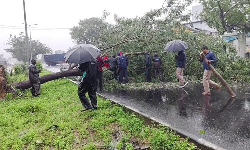 மதுராந்தகம்: சென்னை - திருச்சி தேசிய நெடிஞ்சாலையில் மரம் வேரோடு சாய்ந்து விழுந்ததால் போக்குவரத்து துண்டிக்கப்பட்டது. மரத்தை அகற்றும் பணியில் ஊழியர்கள் ஈடுபட்டுள்ளனர்.