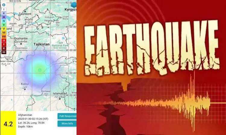 EQ of M: 4.2, On: 30/01/2025 02:15:26 IST, Lat: 36.26 N, Long: 70.84 E, Depth: 10 Km, Location: Afghanistan. For more information Download the BhooKamp App https://t.co/5gCOtjdtw0 @DrJitendraSingh @OfficeOfDrJS @Ravi_MoES @Dr_Mishra1966 @ndmaindia pic.twitter.com/YLDCspFeJY