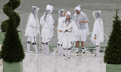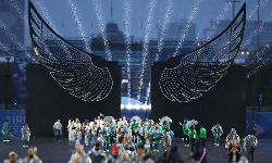 பாரீசில் உள்ள செய்ன் ஆற்றில் துவக்க விழா அணிவகுப்பு நடைபெற்றது.