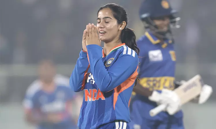 இந்த போட்டிக்கான டாஸ் போடப்பட்டது. அதில் டாஸ் வென்ற இந்திய அணியின் கேப்டன் ஹர்மன்பிரீத் கவுர் பந்துவீச்சை தேர்வு செய்தார். அதன்படி இலங்கை அணி முதலில் பேட்டிங் செய்தது. தொடக்கம் முதல் இந்திய அணியின் பந்துவீச்சை சமாளிக்க முடியாமல் அடுத்தடுத்து விக்கெட்டுகளை இழந்தது. அந்த அணியில் சமரி அதபத்து, ஹர்ஷிதா சமரவிக்ரம மட்டும் நிலைத்து ஆடி ரன்கள் குவித்தனர். சமரி அதபத்து 31ரன்களும், ஹர்ஷிதா சமரவிக்ரம 33 ரன்களும் எடுத்தனர். இறுதியில் இலங்கை அணி 20 ஓவர்கள் முடிவில் 9 விக்கெட் இழப்பிற்கு 128 ரன்கள் எடுத்தது.