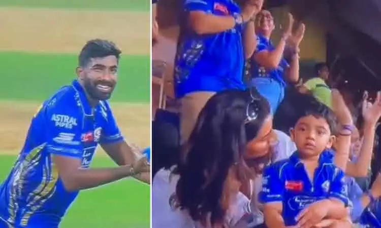 இந்த ஆட்டத்தை நேரில் காண பும்ராவின் மனைவி சஞ்சனா மற்றும் அவர்களது மகன் அங்கத் மைதானத்திற்கு வந்திருந்தனர். அப்போது பும்ரா ஒரு விக்கெட் வீழ்த்தியதும் கேமரா சஞ்சனா மற்றும் அங்கத்தின் பக்கம் திரும்பியது. அதில் இருவரும் பும்ரா விக்கெட் கைப்பற்றியதை கைதட்டி கொண்டாடினர்.