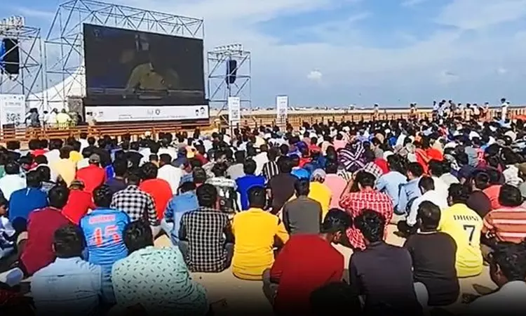 இந்நிலையில், இந்தியா - நியூசிலாந்து மோதும் இந்த போட்டி தமிழகத்தின் மெரினா, பெசன்ட் நகர் கடற்கரைகளில் நேரடி ஒளிபரப்பு செய்யப்படுகிறது. மெரினாவில் விவேகானந்தர் நினைவு இல்லத்திற்கு எதிரிலும், பெசன்ட் நகரில் போலீஸ் பூத் அருகிலும் நேரடியாக ஒளிபரப்ப தமிழ்நாடு விளையாட்டு மேம்பாட்டு ஆணையம் ஏற்பாடு செய்துள்ளது.