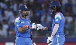மறுபுறம் துணை கேப்டன் சுப்மன் கில் 8 ரன்களில் அவுட் ஆனார். தொடர்ந்து விராட் கோலி களம் இறங்கினார். கேட்ச் கண்டத்தில் இருந்து தப்பிய ரோகித் சர்மா நிதானமாக ஆடி ரன்கள் சேர்ப்பார் என எதிர்பார்க்கப்பட்ட நிலையில் 28 ரன்களில் அவுட் ஆனார். இதையடுத்து விராட் கோலியுடன், ஸ்ரேயாஸ் ஐயர் ஜோடி சேர்ந்தார். இருவரும் நிதானமாக ஆடி ரன்கள் சேர்த்தனர்.
