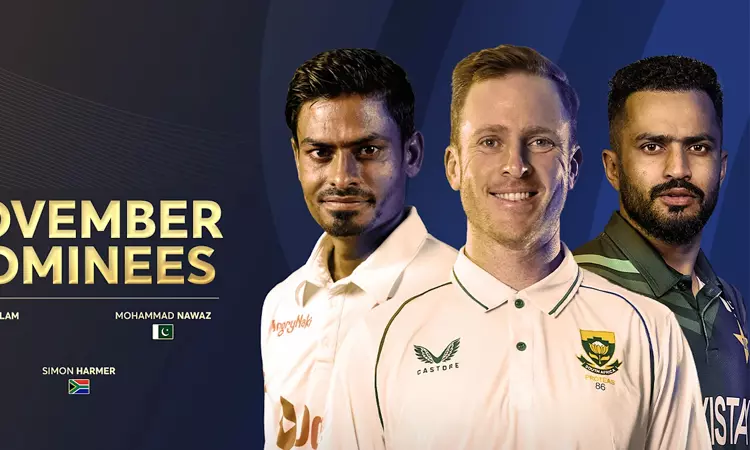 அதன்படி, நவம்பர் மாத சிறந்த வீரர் விருதுக்கான பெயர் பட்டியலில் சிமோன் ஹார்மர் (தென் ஆப்பிரிக்கா), முகமது நவாஸ் (பாகிஸ்தான்) மற்றும் தைஜுல் இஸ்லாம் (வங்காளதேசம்) ஆகியோர் இடம்பெற்றுள்ளனர்.