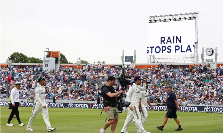இதனையடுத்து இங்கிலாந்து அணி தனது முதல் இன்னிங்சை தொடங்க இருந்தது. அந்த சமயத்தில் லீட்சில் பெய்தது. இதனால் ஆட்டத்தை மீண்டும் தொடங்குவதில் தாமதம் ஏற்பட்டது.