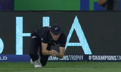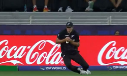 ஆட்டத்தின் முக்கியமான தருணத்தில் ஸ்ரேயாஸ் ஐயரின் விக்கெட்டை சாண்ட்னர் வீழ்த்தினார். ரச்சின் ரவீந்திரா அற்புதமாக கேட்ச் பிடித்தார்.