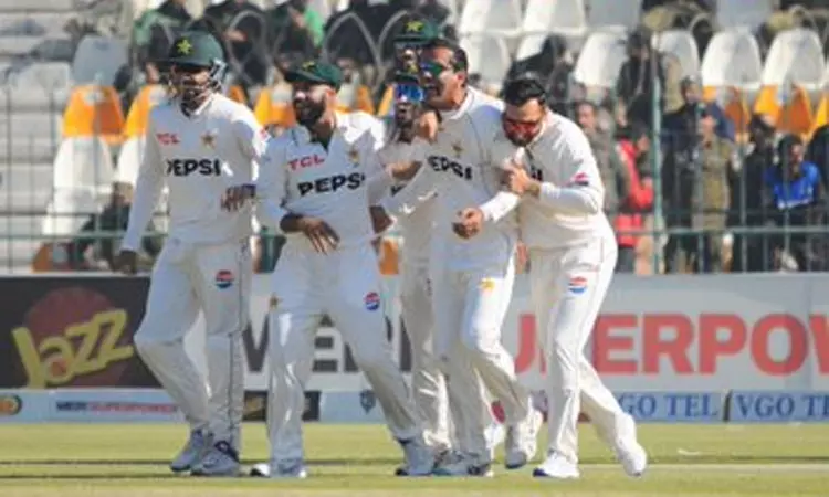 பாகிஸ்தான் அணியில் ஹாட்ரிக் வீழ்த்தி நோமன் அலி 6 விக்கெட்டுகள் வீழ்த்தினார்.