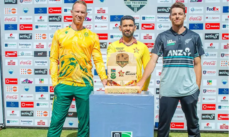 ஜிம்பாப்வே, தென் ஆப்பிரிக்கா, நியூசிலாந்து ஆகிய 3 நாடுகள் இடையிலான முத்தரப்பு டி20 கிரிக்கெட் தொடர் ஜிம்பாப்வேயின் ஹராரே நகரில் நடந்து வருகிறது. இதில் ஒவ்வொரு அணியும் மற்ற அணியுடன் தலா இரு முறை மோத வேண்டும். லீக் சுற்று முடிவில் டாப்-2 இடங்களை பிடிக்கும் அணிகள் இறுதிப்போட்டிக்கு முன்னேறும்.