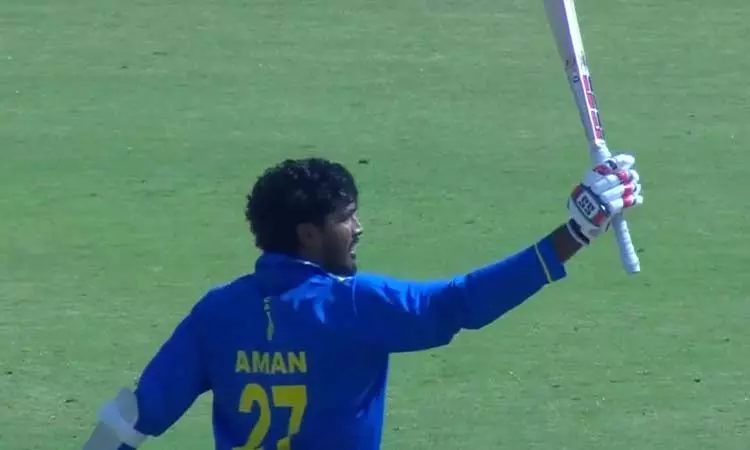 இந்த போட்டிக்கான டாஸ் போடப்பட்டது. அதில் டாஸ் வென்ற பெங்கால் அணியின் கேப்டன் அபிமன்யு ஈஸ்வரன் பந்துவீச்சை தேர்வு செய்தார். அதன்படி முதலில் களமிறங்கிய ஐதராபாத் அணியில் தொடக்க வீரர் அமன் ராவ் அதிரடியாக விளையாடினார். பந்துகளை, பவுண்டரி சிக்சருக்கு பறக்க விட்ட அவர் இரட்டை சதமடித்து (12 பவுண்டரி, 13 சிக்ஸர்) அசத்தினார்.
