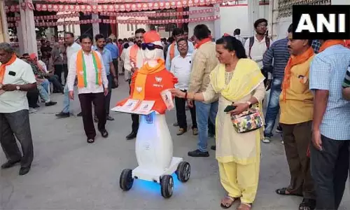 குஜராத் தேர்தலில் பா.ஜ.க.வுக்காக பிரச்சாரம் செய்யும் ரோபோ...