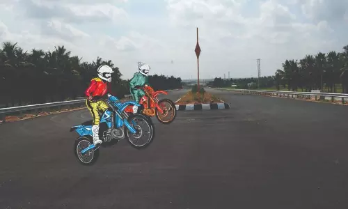 நான்கு வழிச்சாலையில் மோட்டார்சைக்கிளில் பறக்கும் இளைஞர்கள்