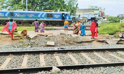 காரைக்கால் அம்பகரத்தூரில் ரெயில்வே சுரங்கப்பாதை அமைக்க கோரி கிராம மக்கள் போராட்டத்தில் ஈடுபட்டனர்.